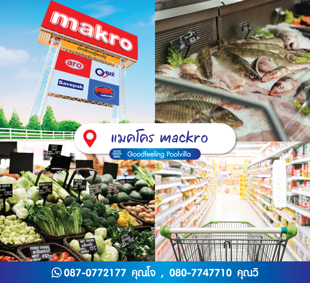 6.Mackro สะดวกสบายใกล้บ้านพัก มีสินค้าโปรโมชั่นกว่า 600 รายการ เพื่อให้ลูกค้าได้ซื้อของใช้ต่างๆ สินค้าคุณภาพ ราคาถูกทุกวัน อาหารของสด ผลไม้ อาหารทะเล