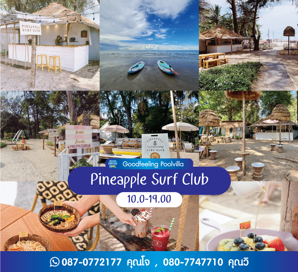 4.Pineapple Surf Club (ไพน์แอปเปิ้ล เซิร์ฟ คลับ) คาเฟ่หัวหิน-ชะอำ ชิลๆ บรรยากาศ ชาย หาด ชายหาด สไตล์บาร์บังกะโล ริมทะเล และที่สำคัญ ใครที่ชื่นชอบในกีฬาเซิร์ฟ ที่นี่ก็มีกระ ดานเซิร์ฟ ให้เช่า จำหน่าย รวมไปถึงมีการเปิดสอนให้กับมือใหม่หัดเล่นเซิร์ฟด้วยจ้าาา ส่วน ใครที่เล่นเซิร์ฟมาเหนื่อยๆ ที่นี่ก็ยังมี เมนูเพื่อสุขภาพสดชื่นๆ รอไว้ให้ได้ลิ้มลองอีกด้วย!
