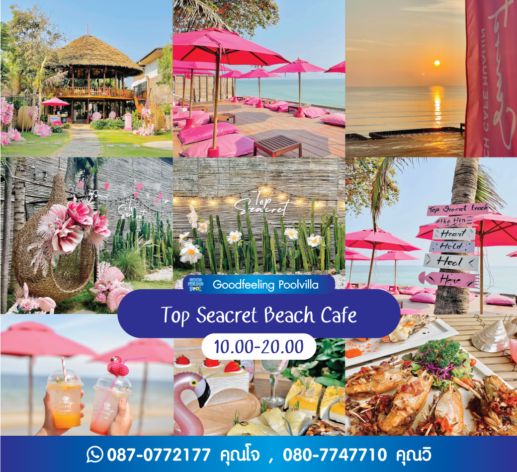 6.Top Seacret Beach Cafe (ท็อปซีเคร็ตบีช คาเฟ่) คาเฟ่หัวหิน-ชะอำ สีสันสดใส น่ารักๆ ที่ซ่อน ตัวอยู่ในที่พัก The Sea-Cret Hua Hin ตัวร้านมี 2 ชั้น ตกแต่งเกว๋ๆ สไตล์บาหลี มาพร้อมมุมถ่าย รูปสวยๆ เพียบ!!! (คนรักการแชะแล้วแชร์ต้องชอบอ่ะ...พูดเลย!!!) ไม่ว่าจะเป็น เก้าอี้หวาย เก้าอี้ รังนก หรือจะเดินเล่นริมทะเลชิลๆ ก็ย่อมได้ นอกจากนี้ที่นี่ยังให้บริการอาหารทั้ง คาว-หวาน เหมาะกับทุกเพศทุกวัยเลยล่ะ!