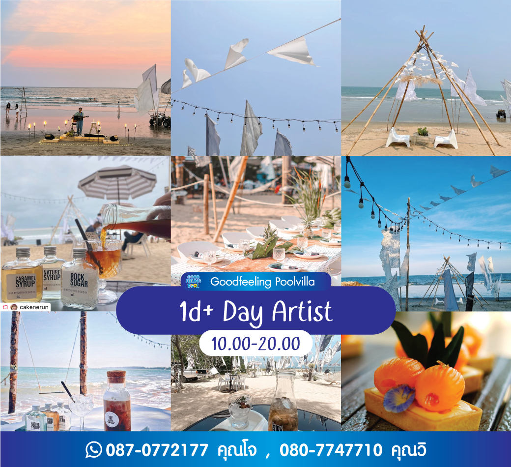 2.1d+ Day Artist (วันดีเดย์อาร์ททิส) คาเฟ่หัวหิน-ชะอำ เท่ห์ๆ ที่แอบมีกลิ่นอายสไตล์มินิมอ ลนิดๆ มาพร้อมความเงียบสงบของหาดทรายขาวบริเวณ เขาเต่า เลยทําให้เหมาะแก่การมาพักผ่อน ในวันหยุดสุดสัปดาห์ พร้อมนั่งจิบเครื่องดื่มแก้วโปรดชิลๆ ริมทะเลซะเหลือเกิน! และที่จะไม่พูดถึง คงจะไม่ได้ คือ การตกแต่งและจัดวางที่นั่งคล้ายๆ กระโจม มีธงสี ขาว-เทา สลับกันไปมา บอกเลย ว่าเกมมากๆ ใครที่รู้ตัวว่าเป็น สายถ่ายภาพแนว Hipster ไม่ควรพลาด!!